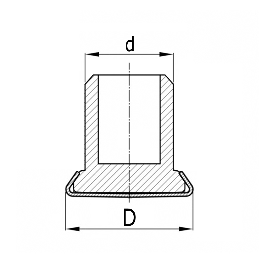 Bohrung=Rohr Innenmaß-Ø, d=Schaft-Ø, D=Kopf-Ø