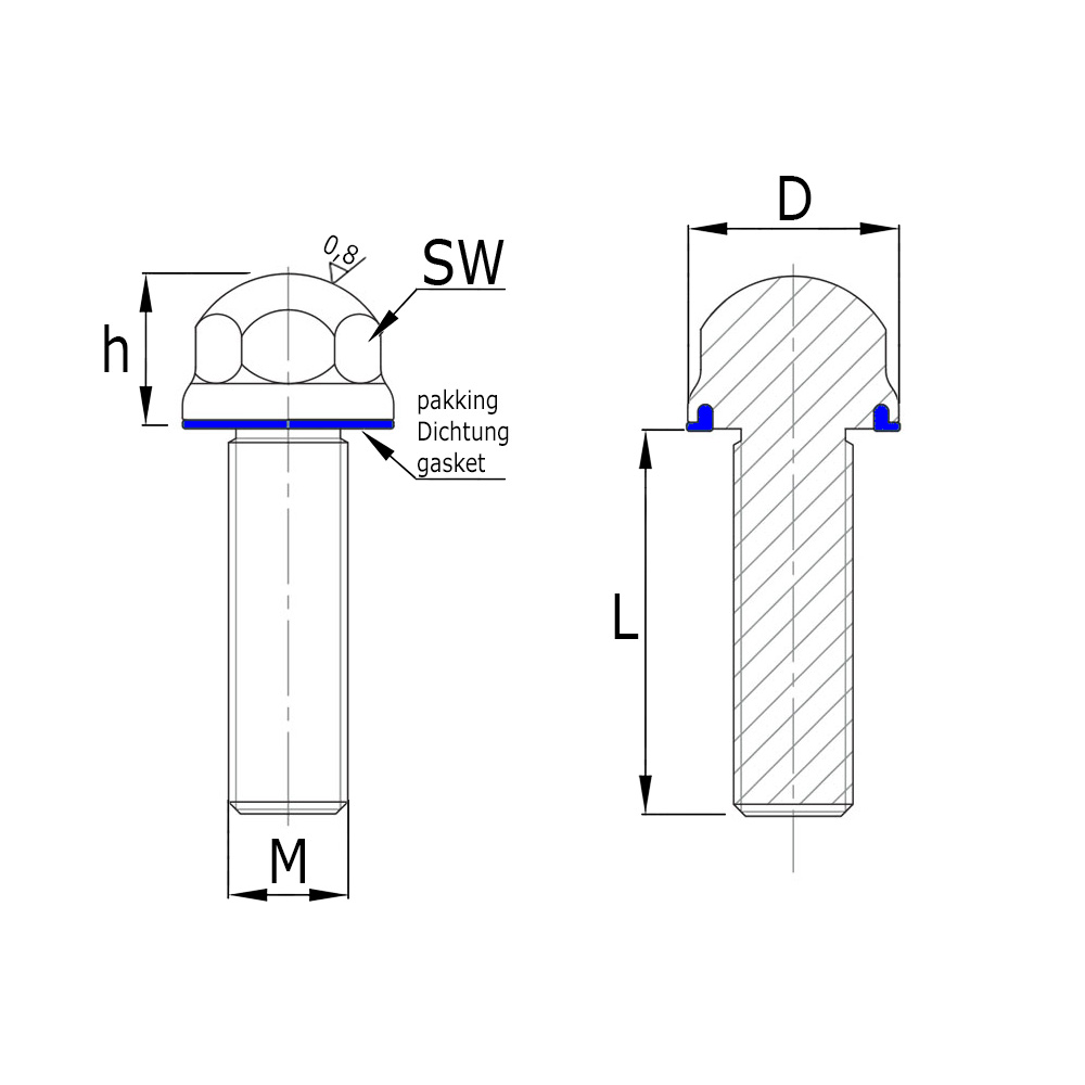Sechskantschraube Hygiene 3A - Edelstahl AISI304 mit blauem Dichtring - M20x30