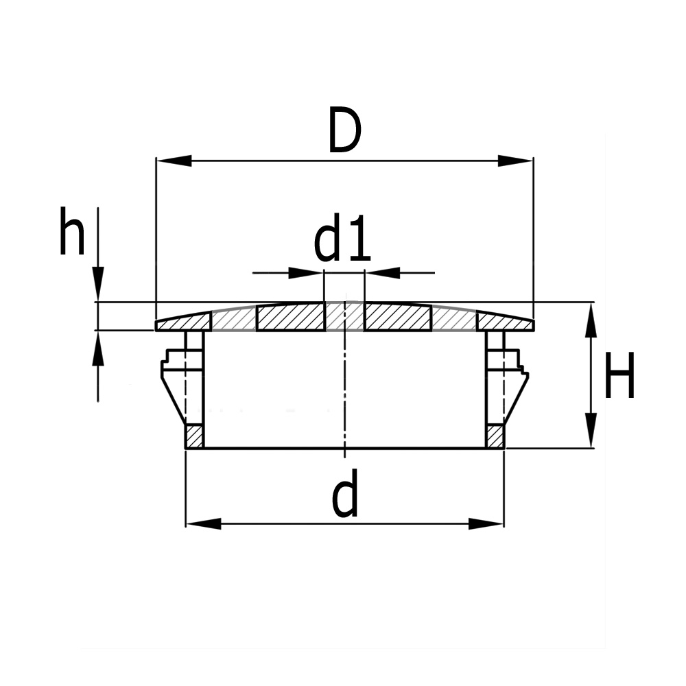 A=Kappen-Ø, B=Höhe, Bohrung=Montageloch-Ø, C=Kappenhöhe, d=Bohrung-Ø, Stärke=Maximale Blechstärke, Anzahl=Anzahl der Bohrungen