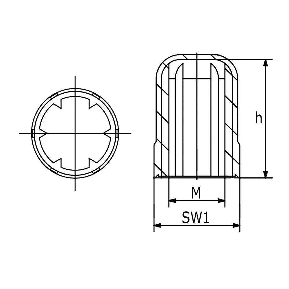 h=Totale Innenhöhe, M=Gewindemaß metrisch, SW1=Schlüsselweite