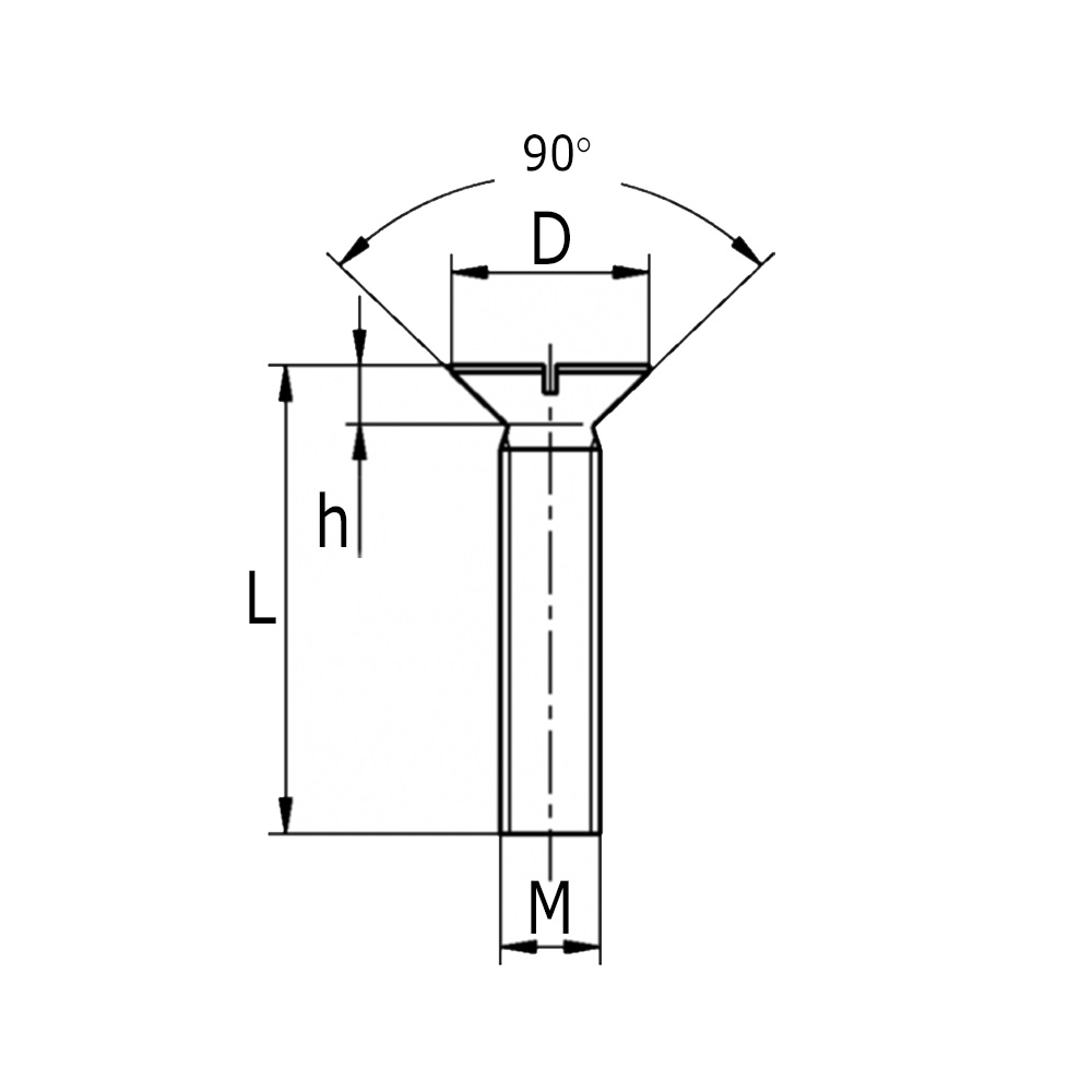 D=Kopf-Ø, h=Höhe, L=Länge, M=Gewinde