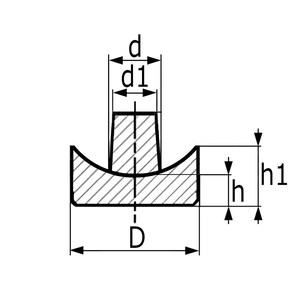 Einrastpuffer mit Zapfen - gewölbter Kopf