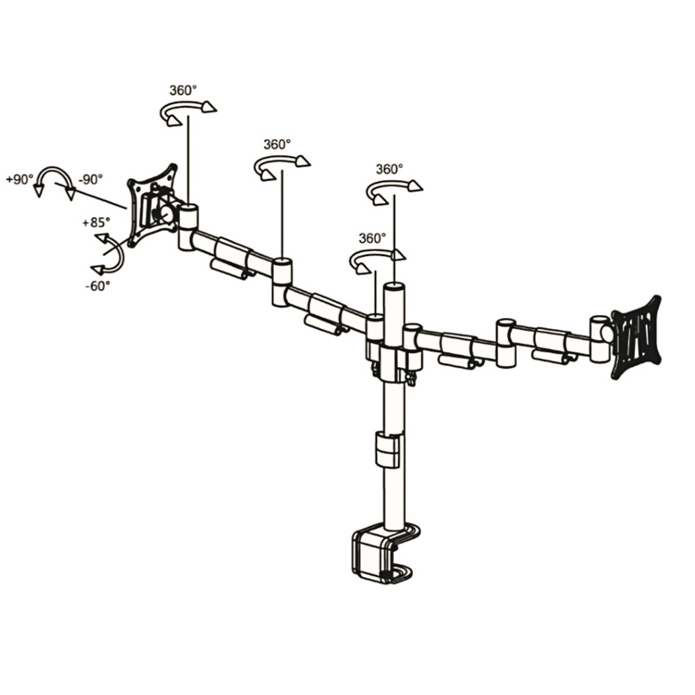 Monitorhalterung - 2-fach - B-Sky eco3 - inkl. Tischrandklemme und Durchschraubb- und Kabellochbefestigung - weiß