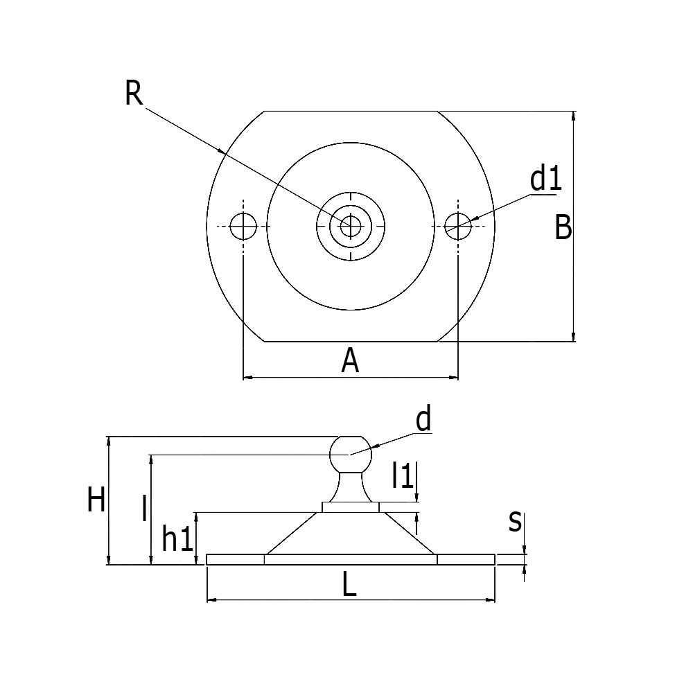 Gasfeder Rundbeschlag 55x44x2mm - Kugelgelenk Ø10 - M8 - max 650N - Stahl verzinkt