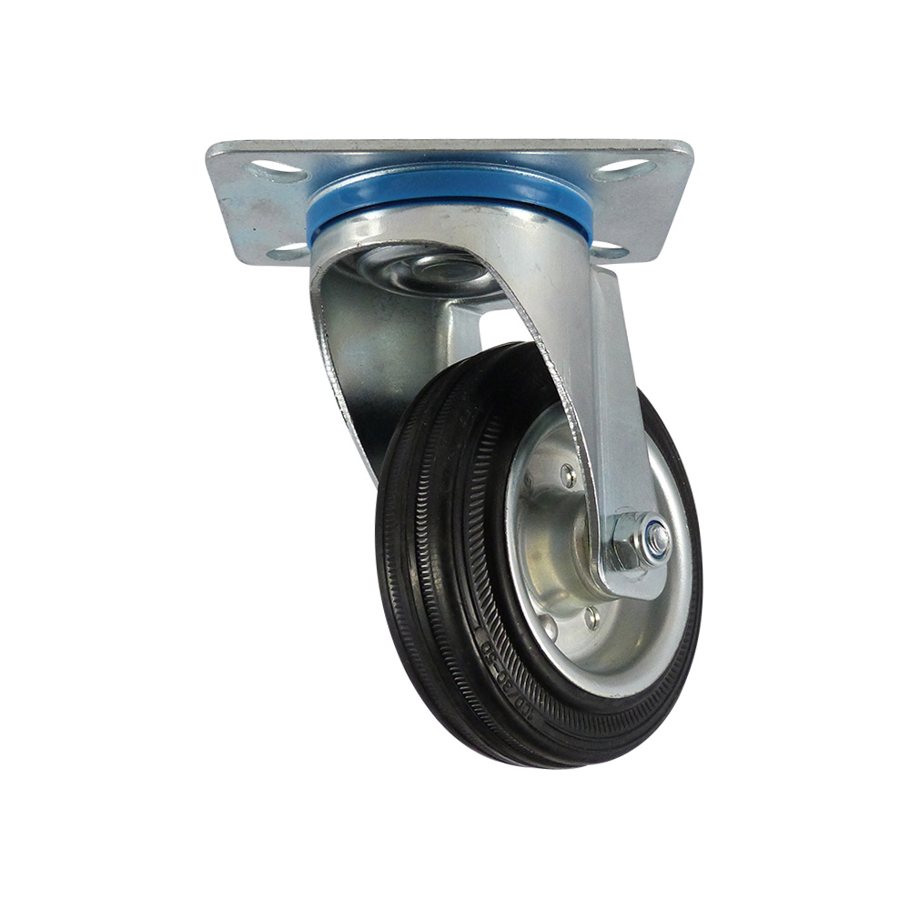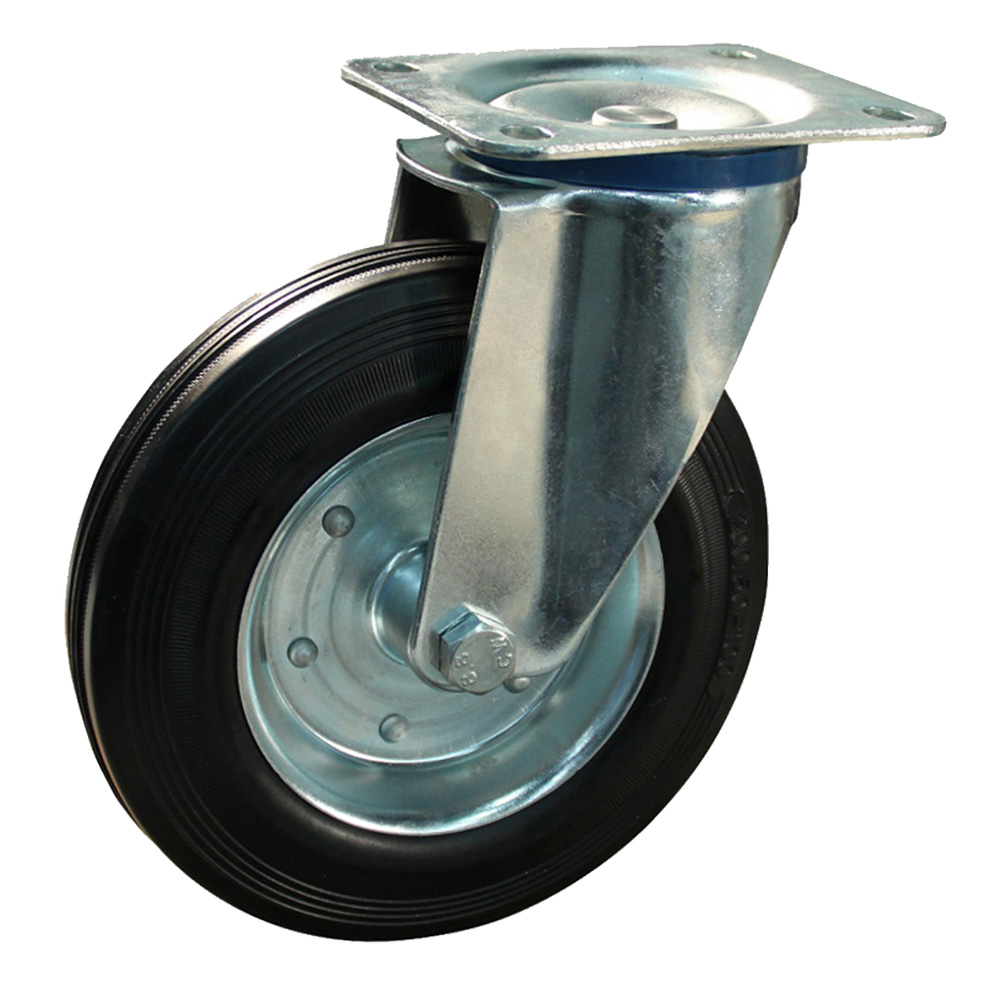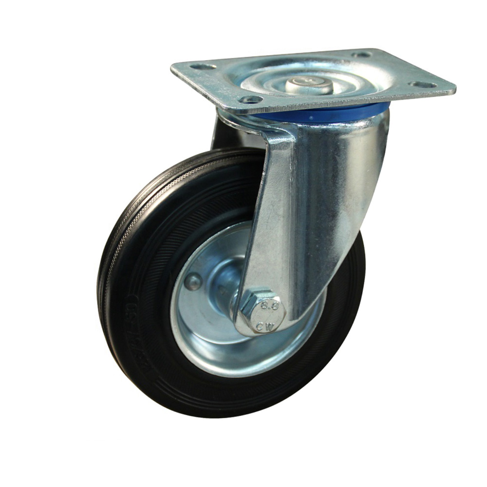 Lenkrol 200mm, schwarzen elastische Gummi Reife, verzinkter Stahl-Felge, mit Rollenlager