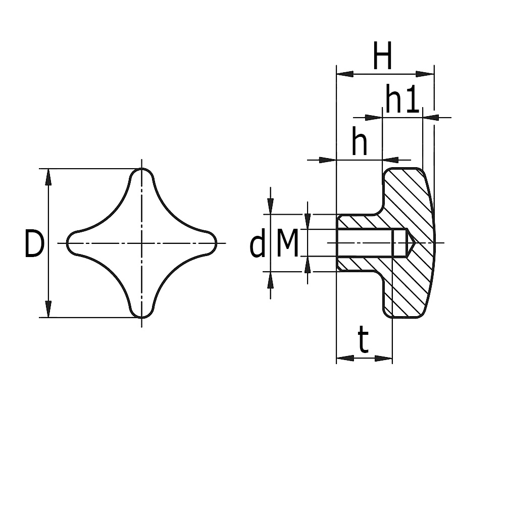 Kreuzgriffe Duroplast – DIN6335 - Außengewinde