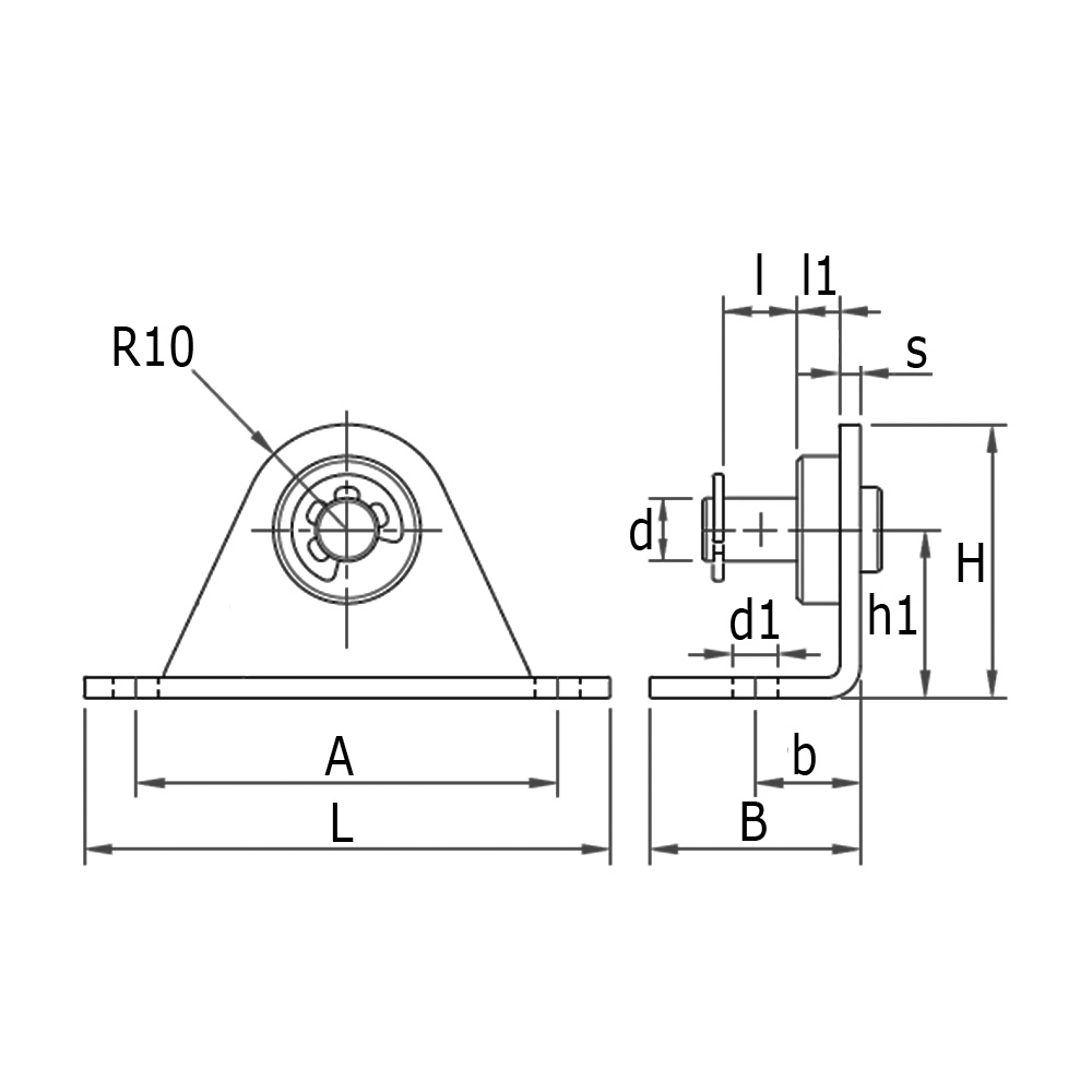 Gasfeder Winkelbeschlag mit Bolzen 50x20x26mm, 2xØ4,3 - Stich 40mm - Bolzen Ø8x11mm - max 1200N - Stahl verzinkt