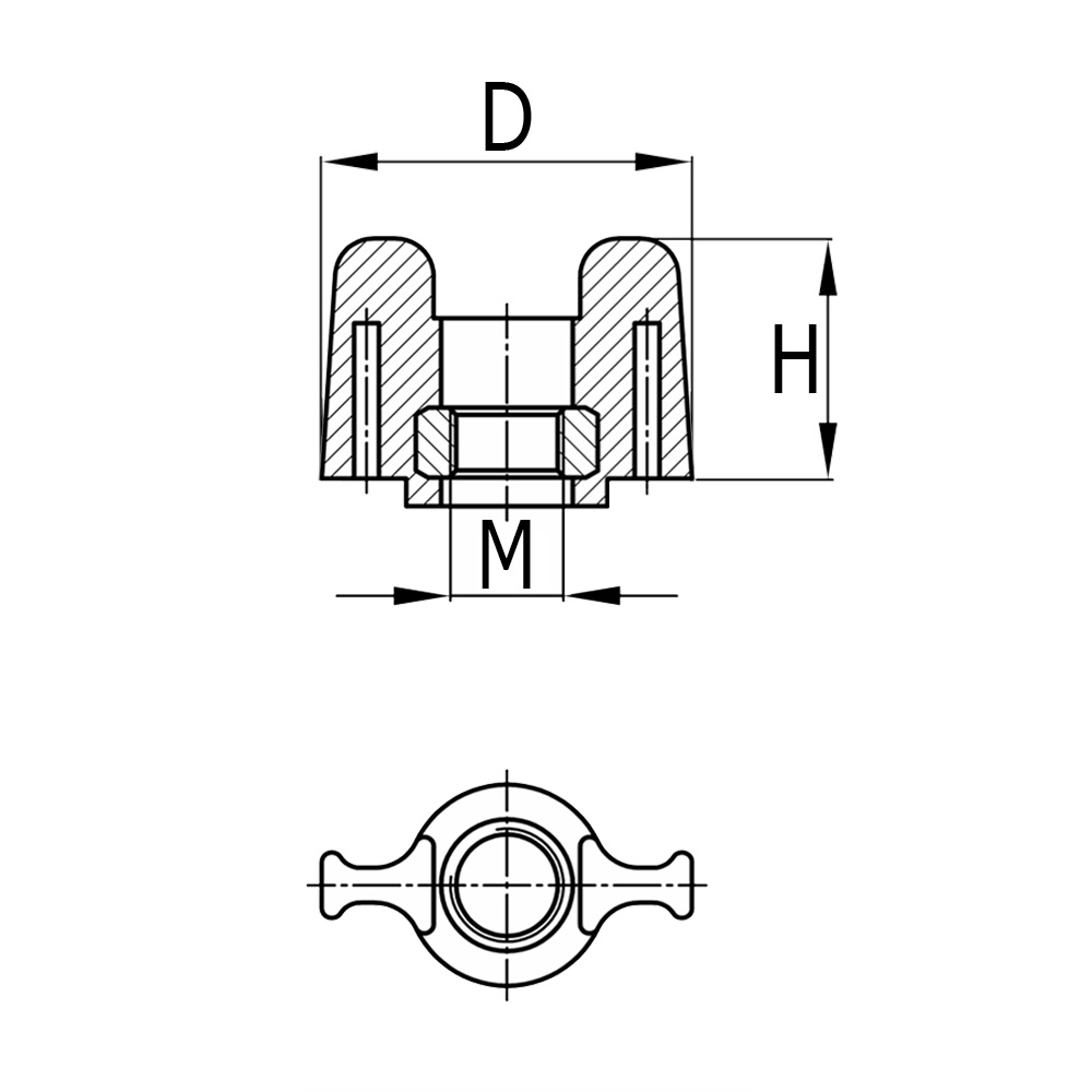 D=Knopflänge, H=Höhe, M=Gewindemaß