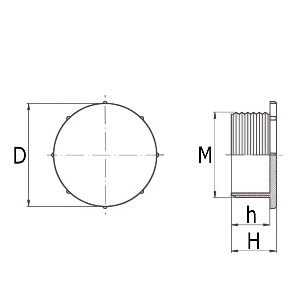 BSP=Gewinde BSP/GAS G, D=Kapfen-Ø auswendig, H=Totale Höhe, M=Gewinde metrisch, UNF=Gewinde UNF