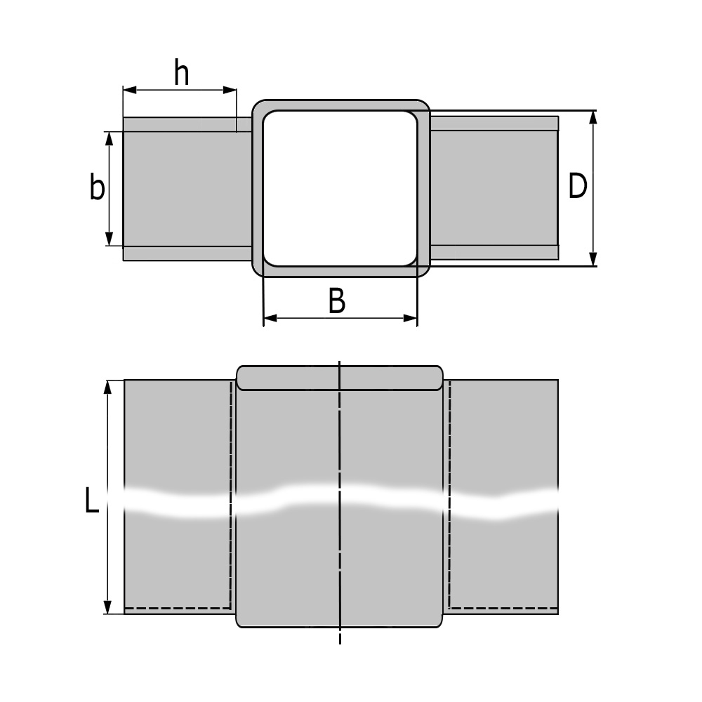 Ausf.=Offen oder einseitig geschlossen, BxD=Rohrmaß=Innenmaße, b=Breite innen, h=Höhe innen, L=Länge