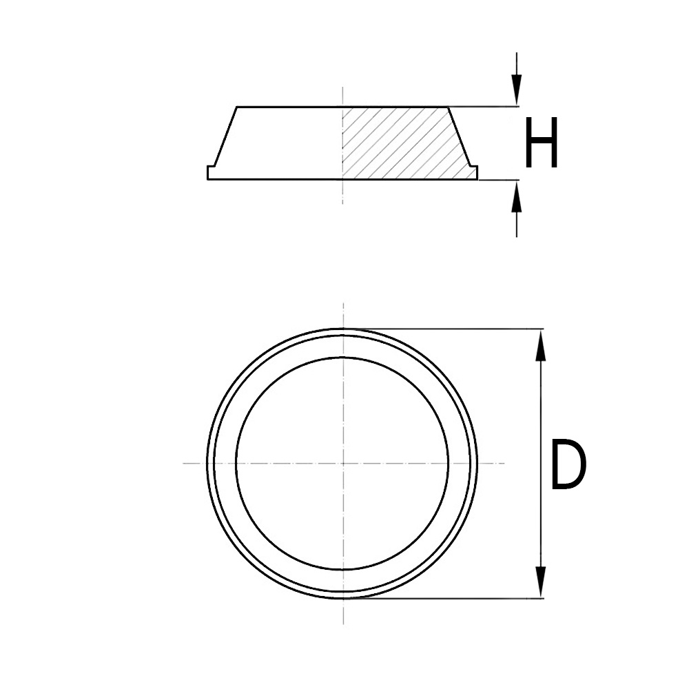 Ausf.=Modell, D=Durchmesser oder Länge x Breite, H=Höhe, K=Tragelast indikation pro Puffer in kg bei 24°C