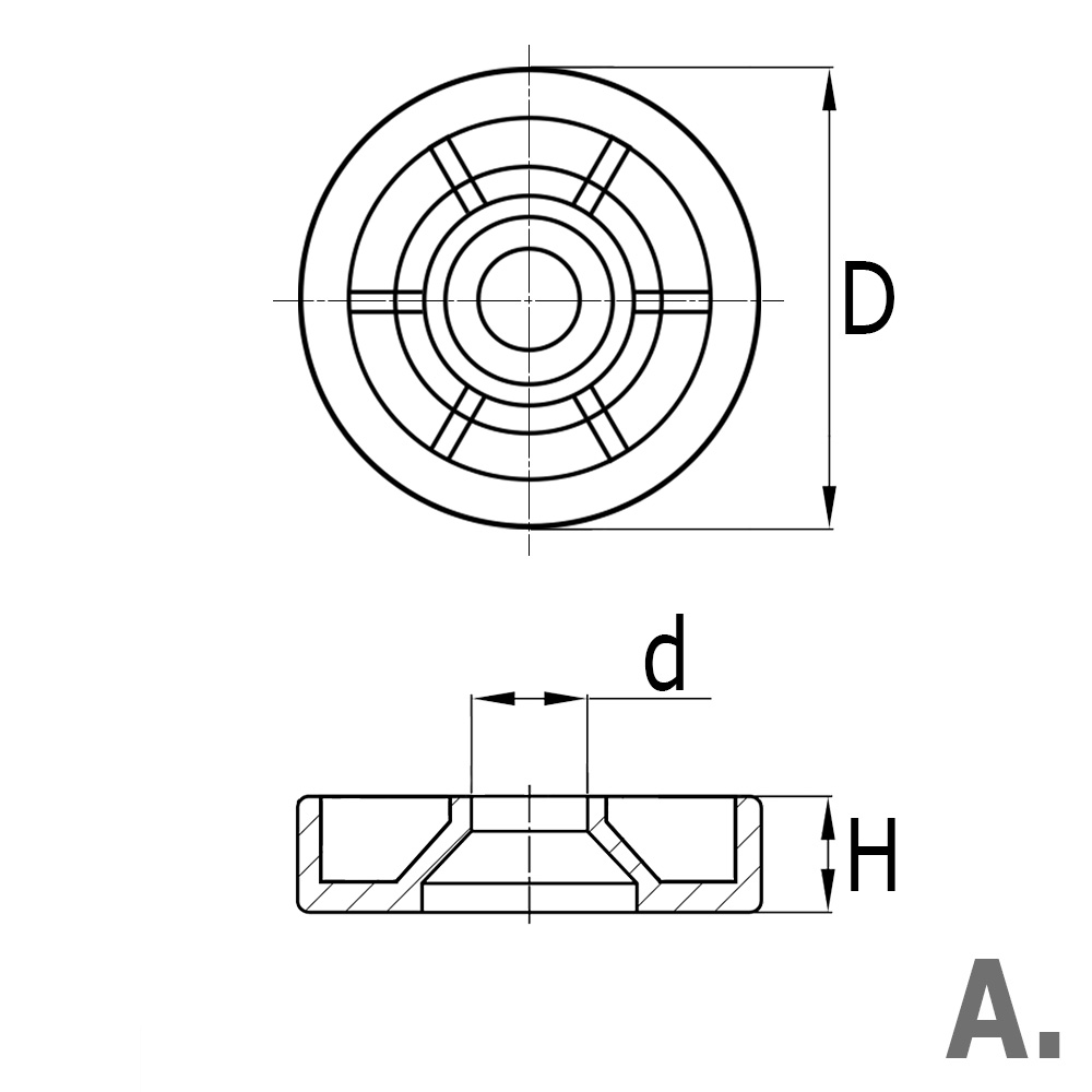 Polsterfuß rund – niedrige Ausführung