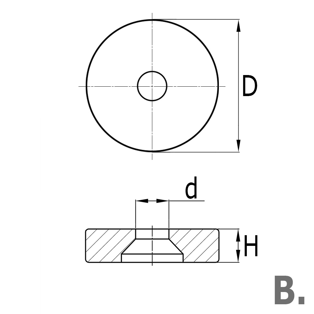 D=Außen-Ø, d=Bohrung-Ø, H=Höhe, Typ=Ausführung PA/PE