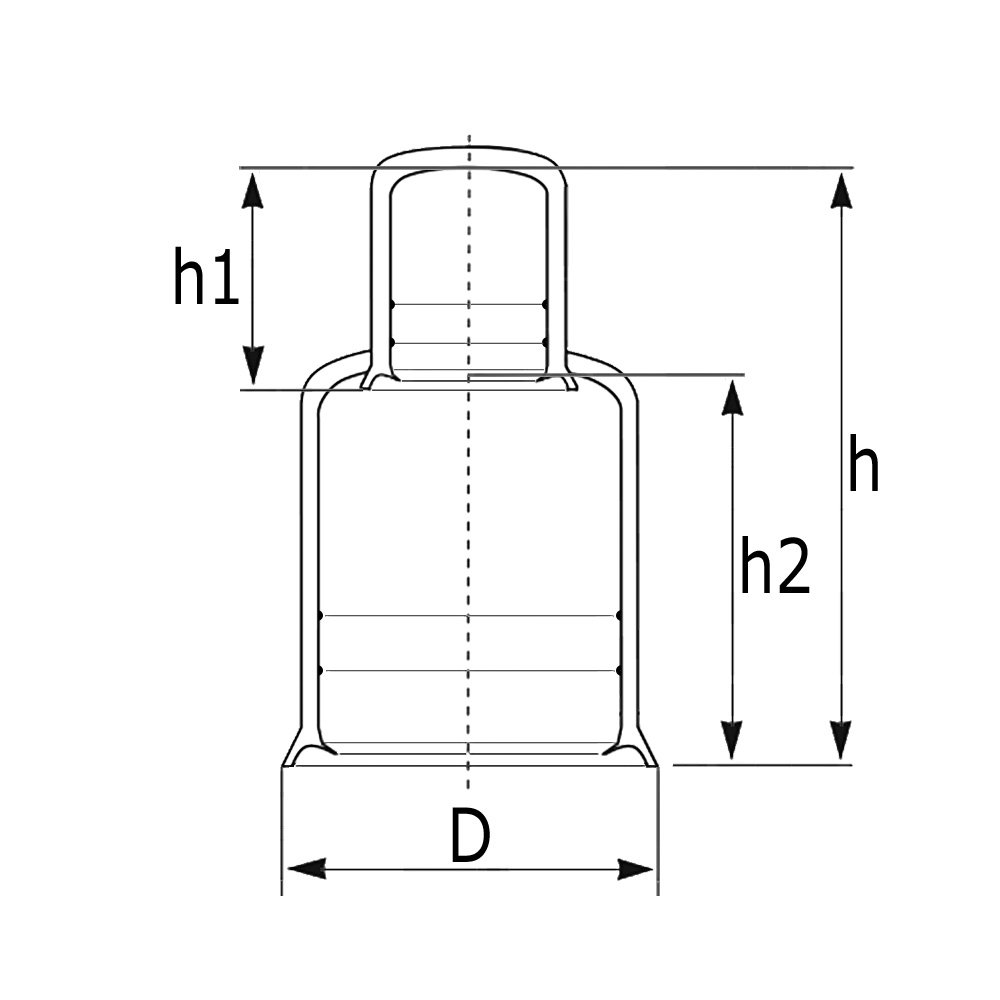 Ausf.=*=Nicht geeignet für Kontermuttern, D=Außen-Ø, H=Totale Innenhöhe, H1=Innenhöhe (bei Annährung), H2=Innenhöhe (bei Annährung), M=Gewindemaß metrisch, SW=Schlüsselweite, UNC=Gewindemaß UNC