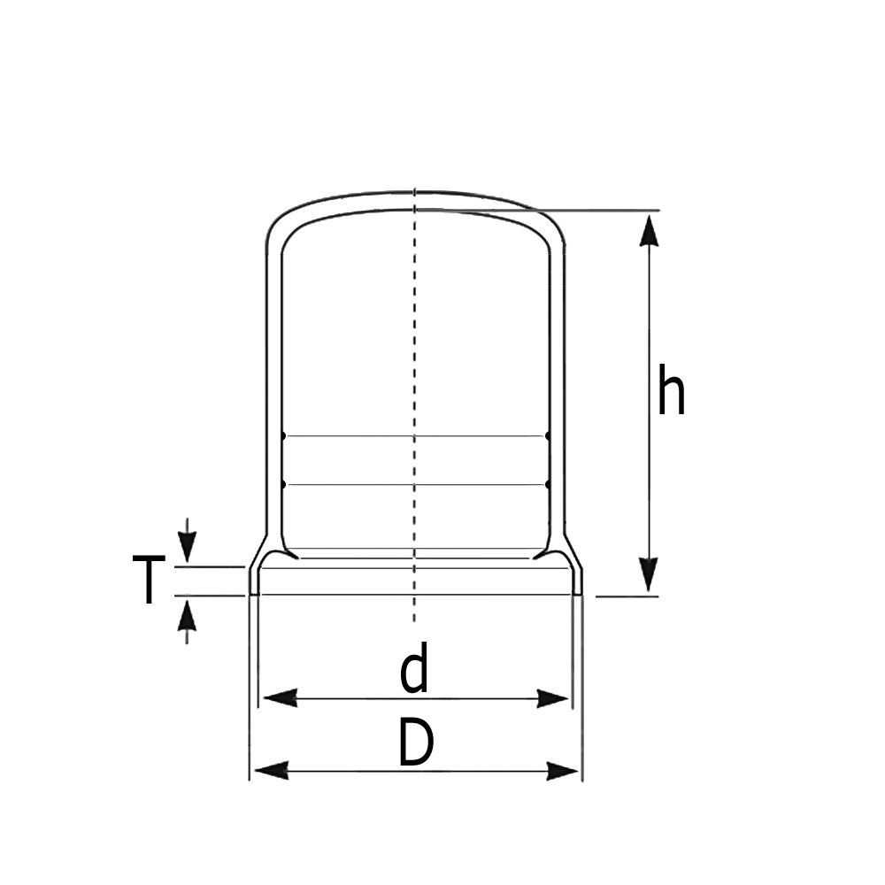 D=Außen-Ø, d=Innen-Ø Unterlegscheibenabdeckung, H=Totale Innenhöhe, h=Innenhöhe Unterlegscheibenabdeckung, M=Gewindemaß metrisch, SW=Schlüsselweite, UNC=Gewindemaß UNC