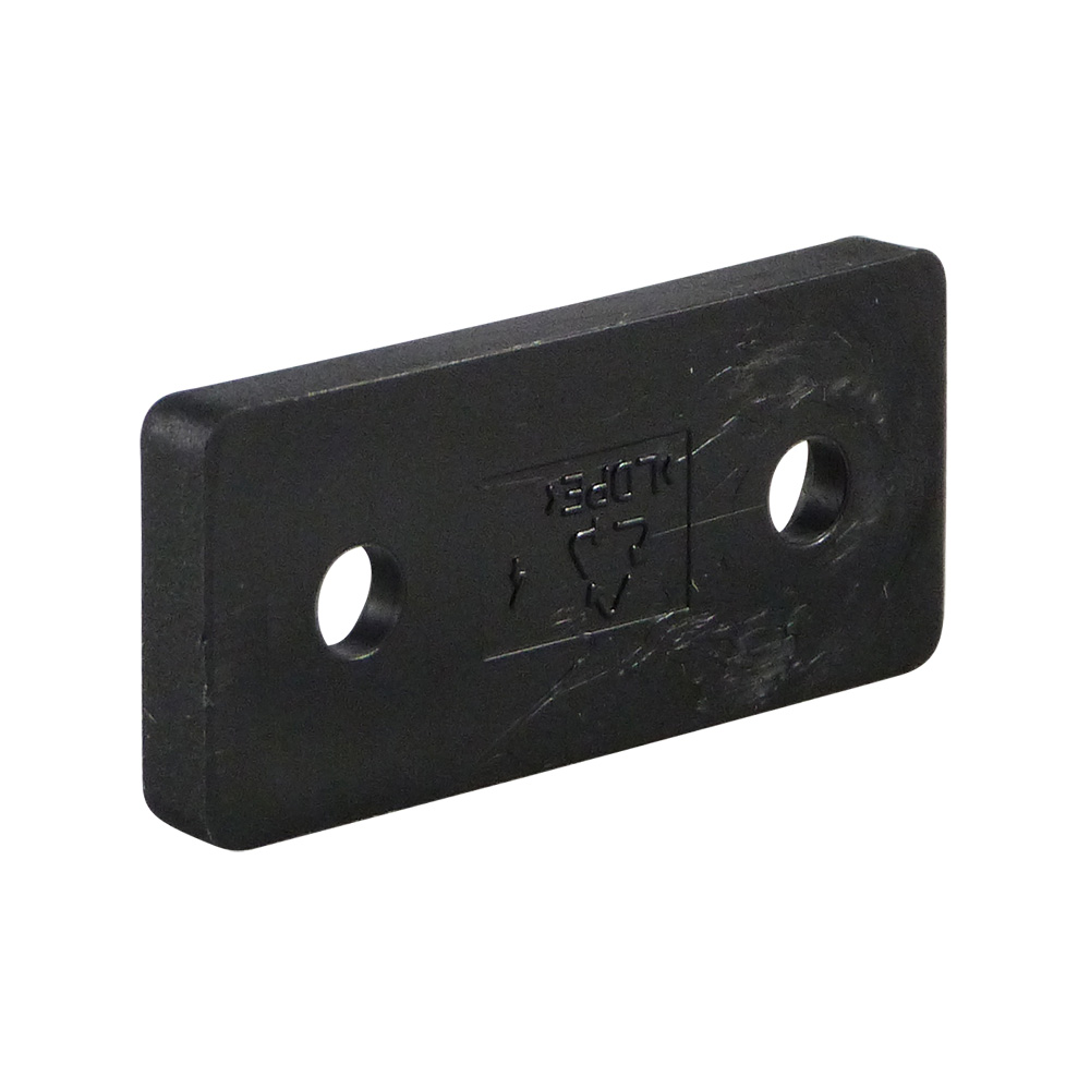 - Platten mit zwei Befestigungsbohrungen sind lieferbar mit rechteckigen Gleitflächen von 40x20mm bis zu 50x27mm mit Stärken von 4,8mm bis zu 8,1mm