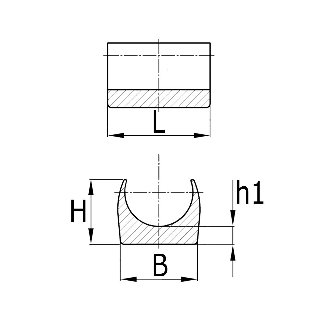 • Klemmschalengleiter, ohne Zapfen, mit flachem Boden sind lieferbar für Rundrohre von Ø10mm bis zu Ø35mm