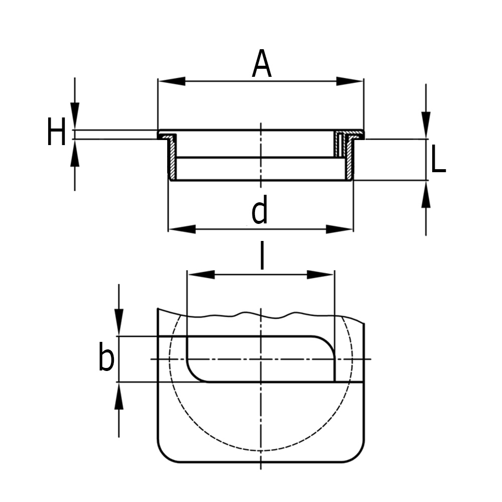A=LxB Kopf, a=Länge Kabelloch, b=Breite Kabelloch, H=Kopfhöhe, L=Schaftlänge