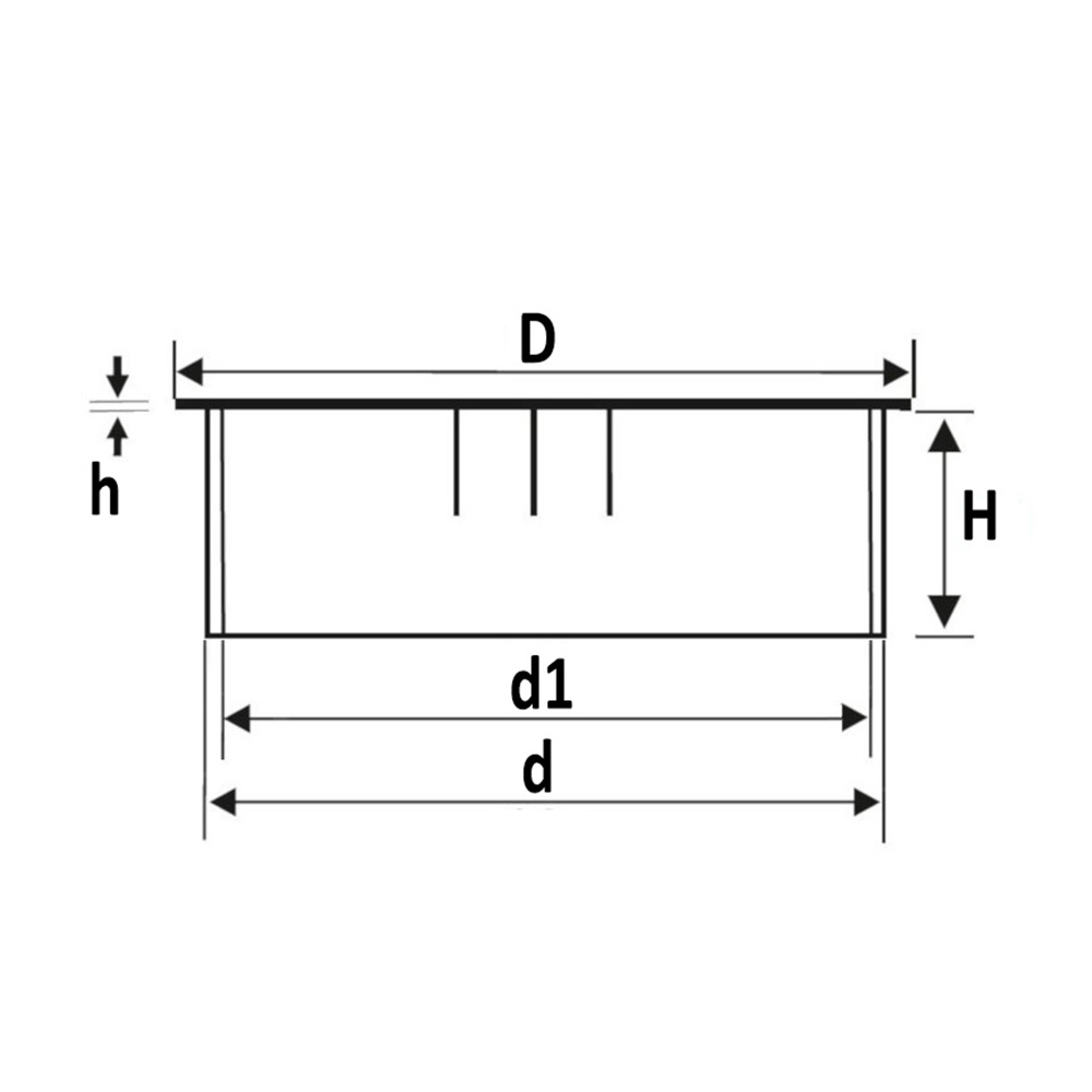 Bohrung=Ø-Montageloch, D=Ø-Kopf, d=Ø-Schaft, d1=Ø-Kabelloch, H=Schafthöhe, h=Kopfhöhe