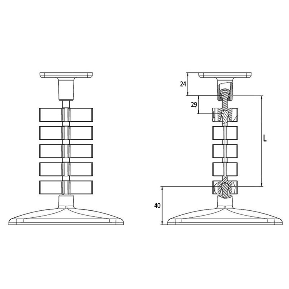 Anzahl=Anzahl Glieder, D=Länge/Breite Fußplatte, L=Totale Gliederlänge, l1=Länge pro Glied/Segment