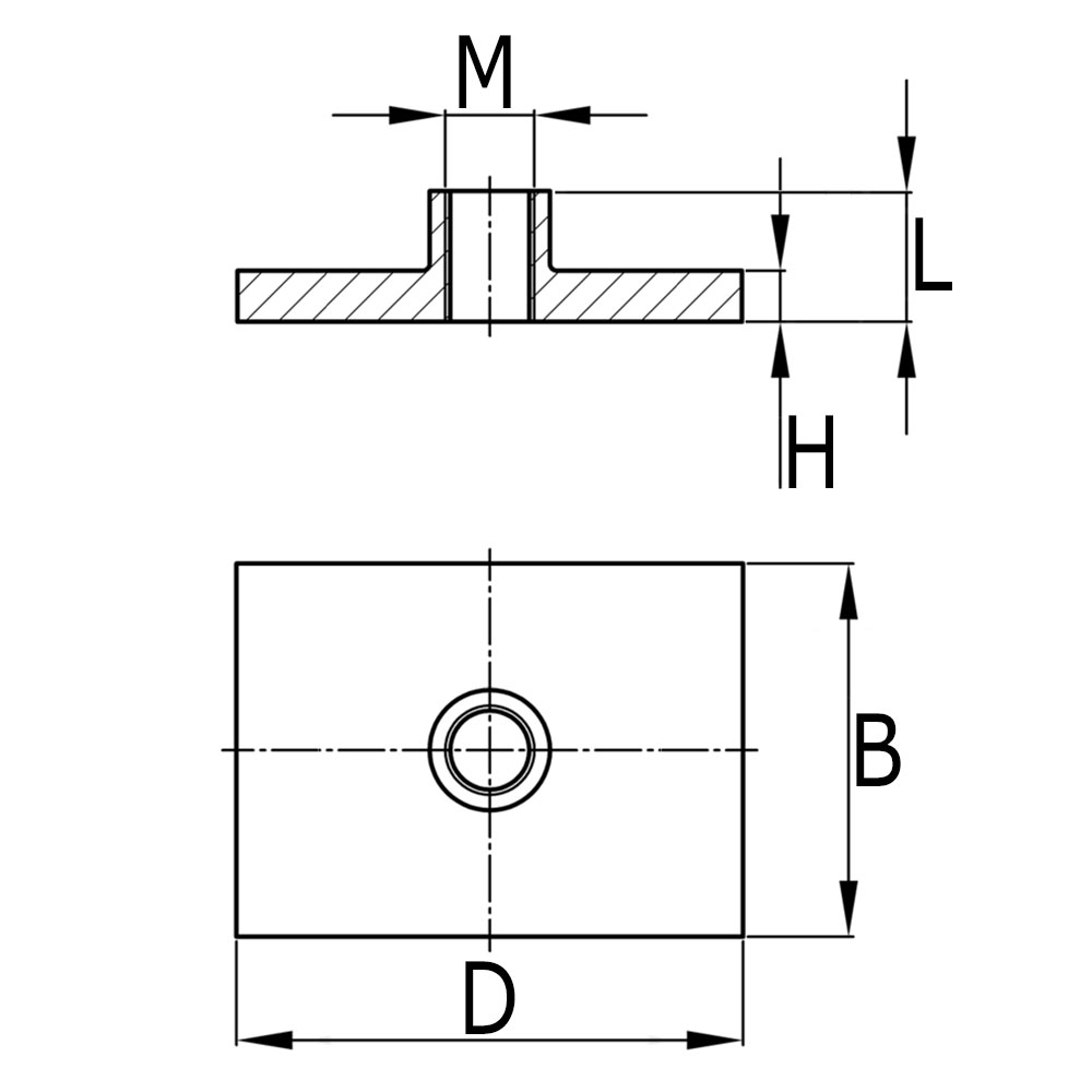 Edelstahl-Schweißplatten mit Gewinde - rechteckig