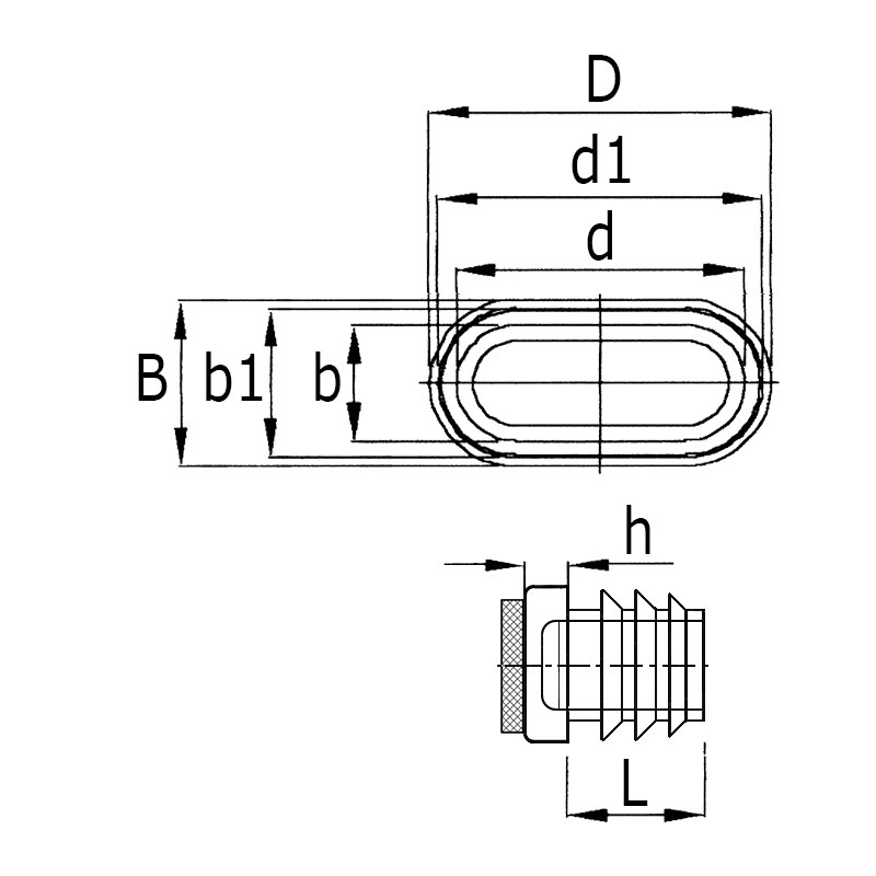 Gleiter für Ovalrohre 35x15 schwarz mit Filz