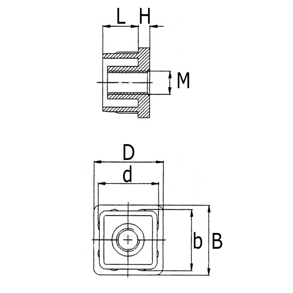 Zinkdruckgussbuchsen für Vierkantrohre 40 x 40 x 2 M10