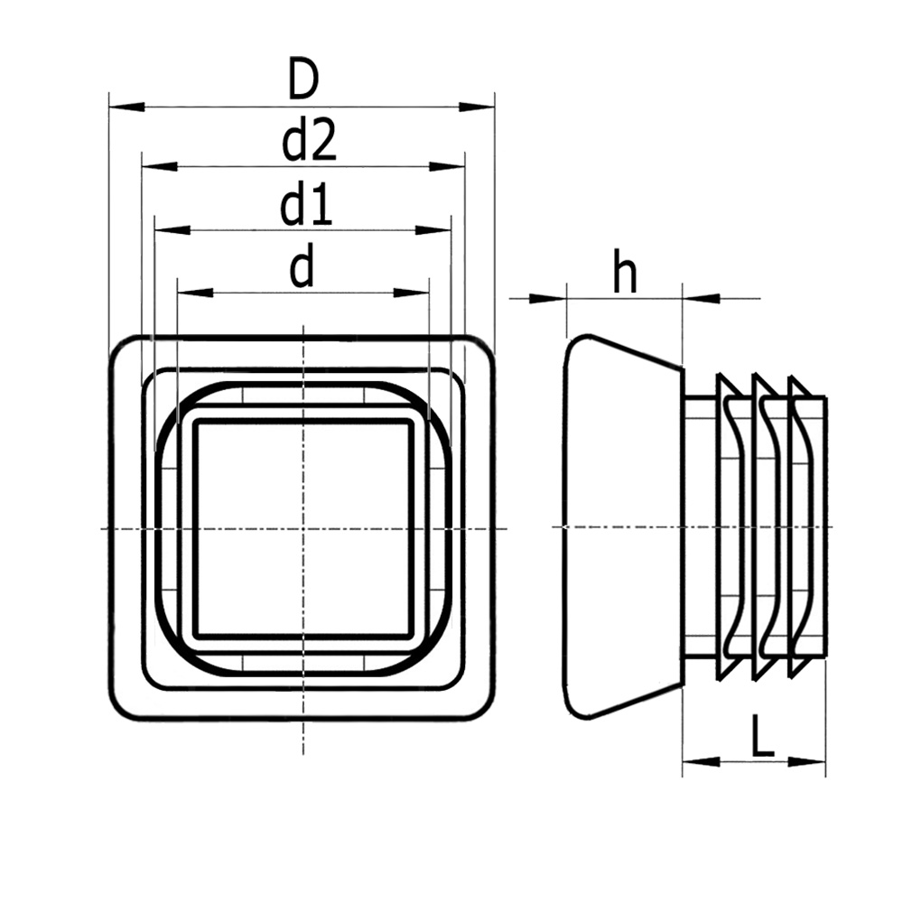 Ausf.=Wandstärke des Rohrs, D=Aufstellfläche Maß Unterseite, d=Schachtmaß, d1=Lamellenmaß, d2=Aufstellfläche Maß Oberseite, h=Höhe, L=Schaftlänge, Rohrmaße=Rohr Außenmaß