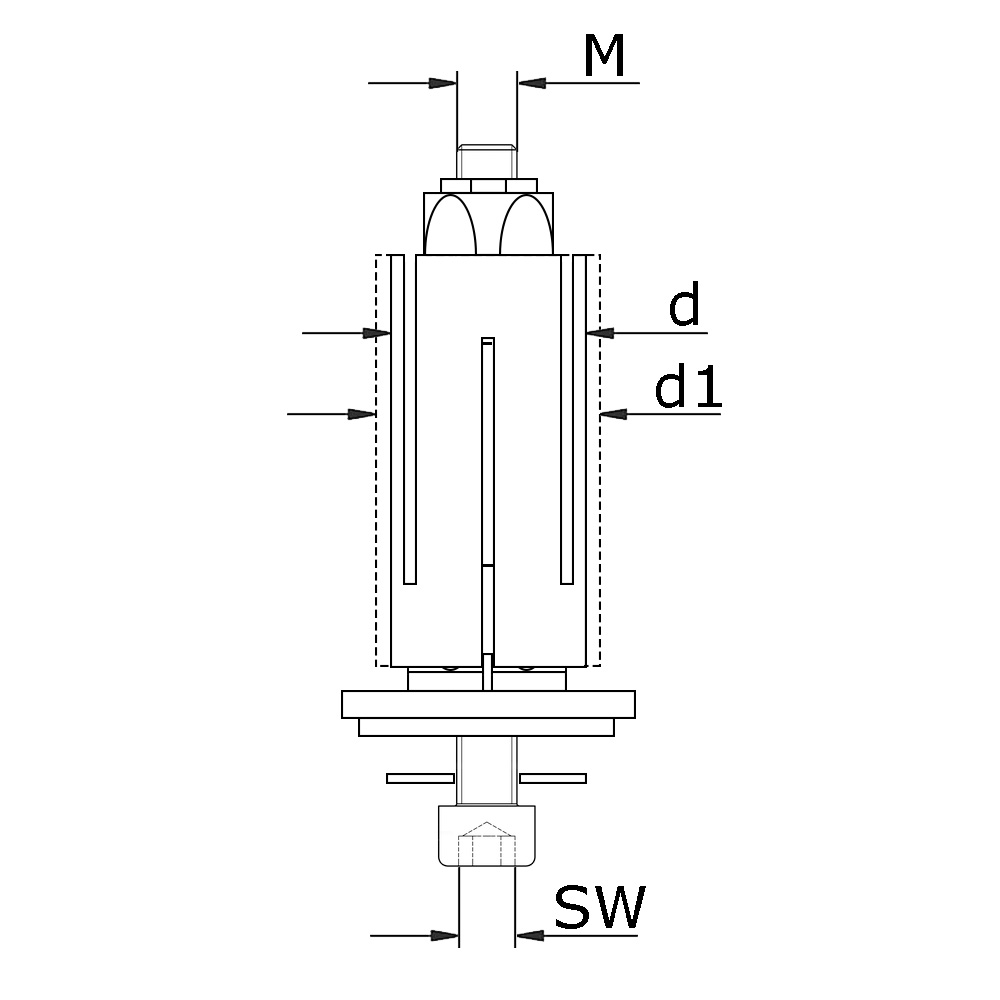 Expander für Rollen mit Rückenloch - quadratisch - 36-40mm M10