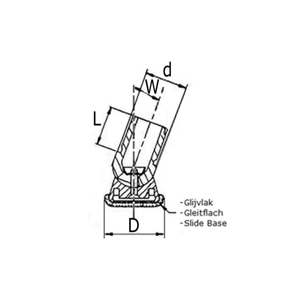Gelenkgleiter PA mit Edelstahl V2A Gleitfläche 30mm 28 x 2,0 - Kugelgelenk - schwarz