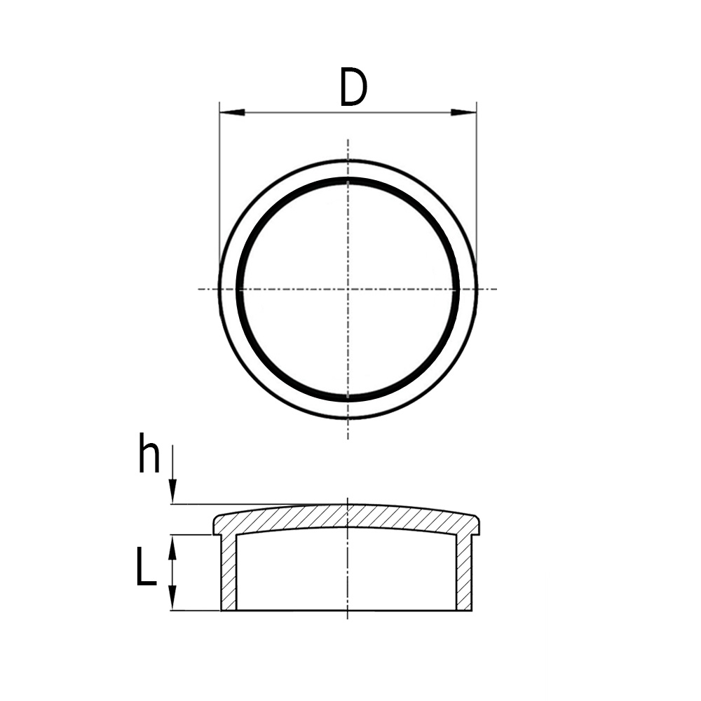 Ausf.=Wandstärke des Rohrs, D=Kopf-Ø, L=Schaftlänge, h=Kopfhöhe, Rohrmaße=Rohr Außenmaß
