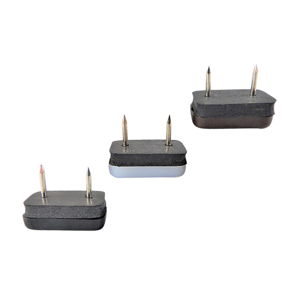 Material: Gleitfläche –HD-PE (Höhe Dichte Polyethylen), Zwischenpolster– PVC-P (weich Polyvinylchlorid), Nagel – stahlvernickelt