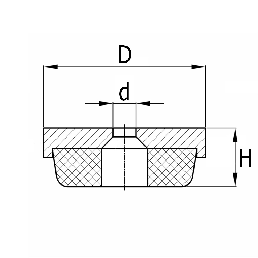 D=Kunststoff Fassung-Ø, D1=Filz-Ø, d=Nagel-Ø, L=Nagel-Länge