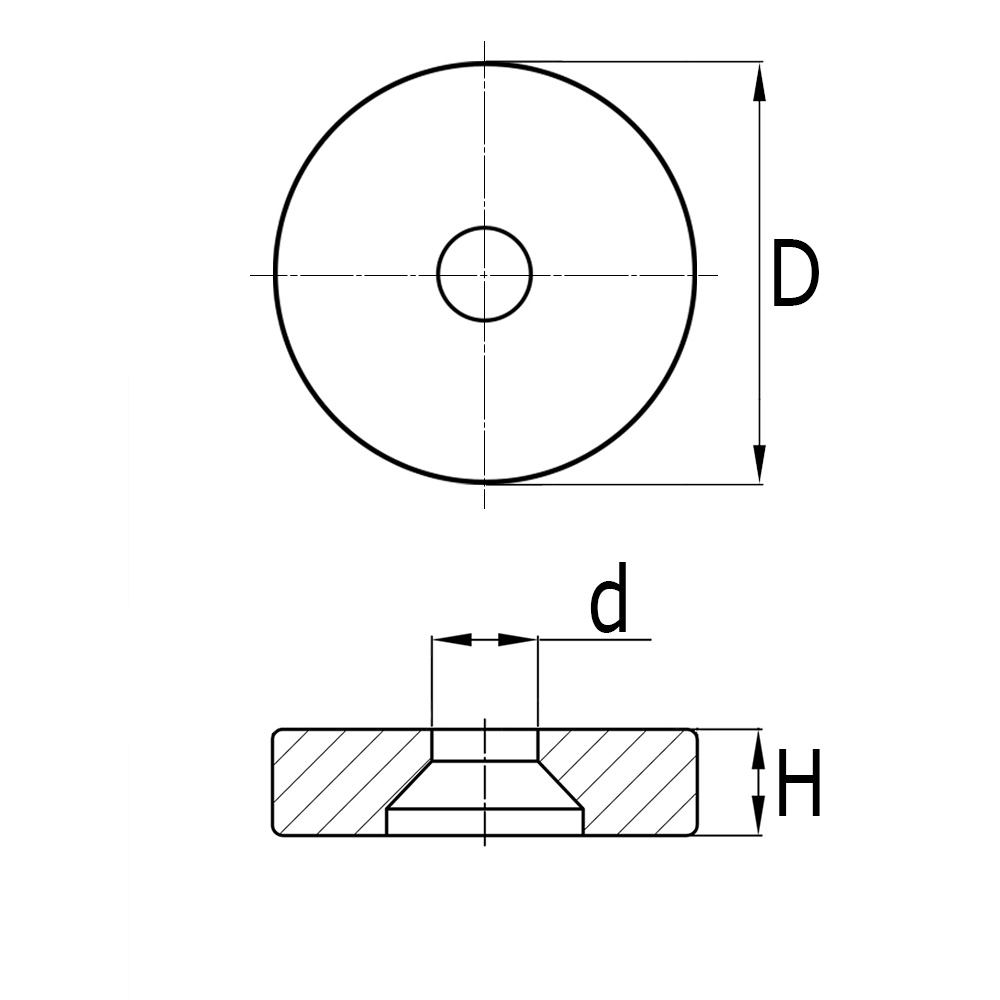 D=Gleiter-Ø, d=Bohrung-Ø, H=Höhe