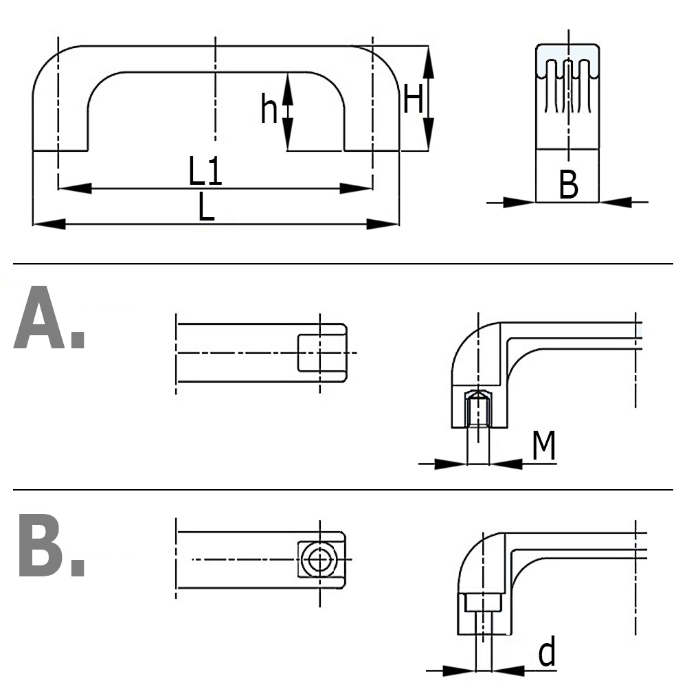Bügelgriffe – PA – mit Bohrung oder Gewindebuchse