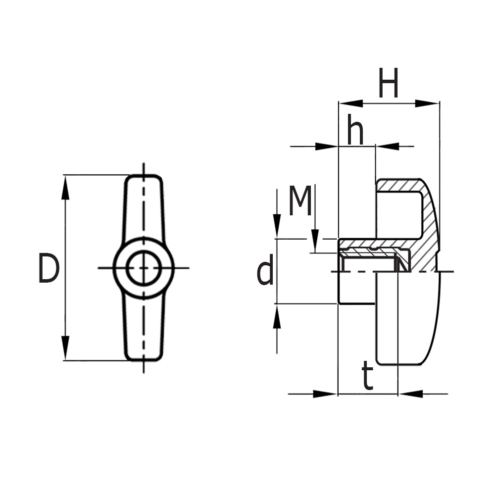 Flügelmutter Modell 5 – PA – Stahl Innengewinde