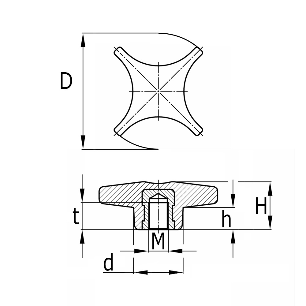 Kreuzgriffe Duroplast – DIN6335 - Innengewinde
