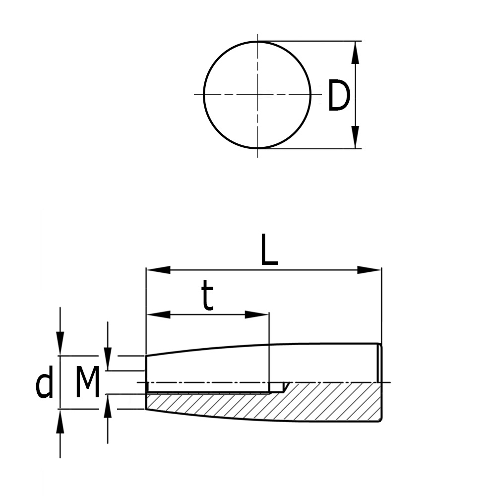 D=Griff-Ø-groß, d=Griff-Ø-klein, L=Grifflänge, M=Gewindemaß