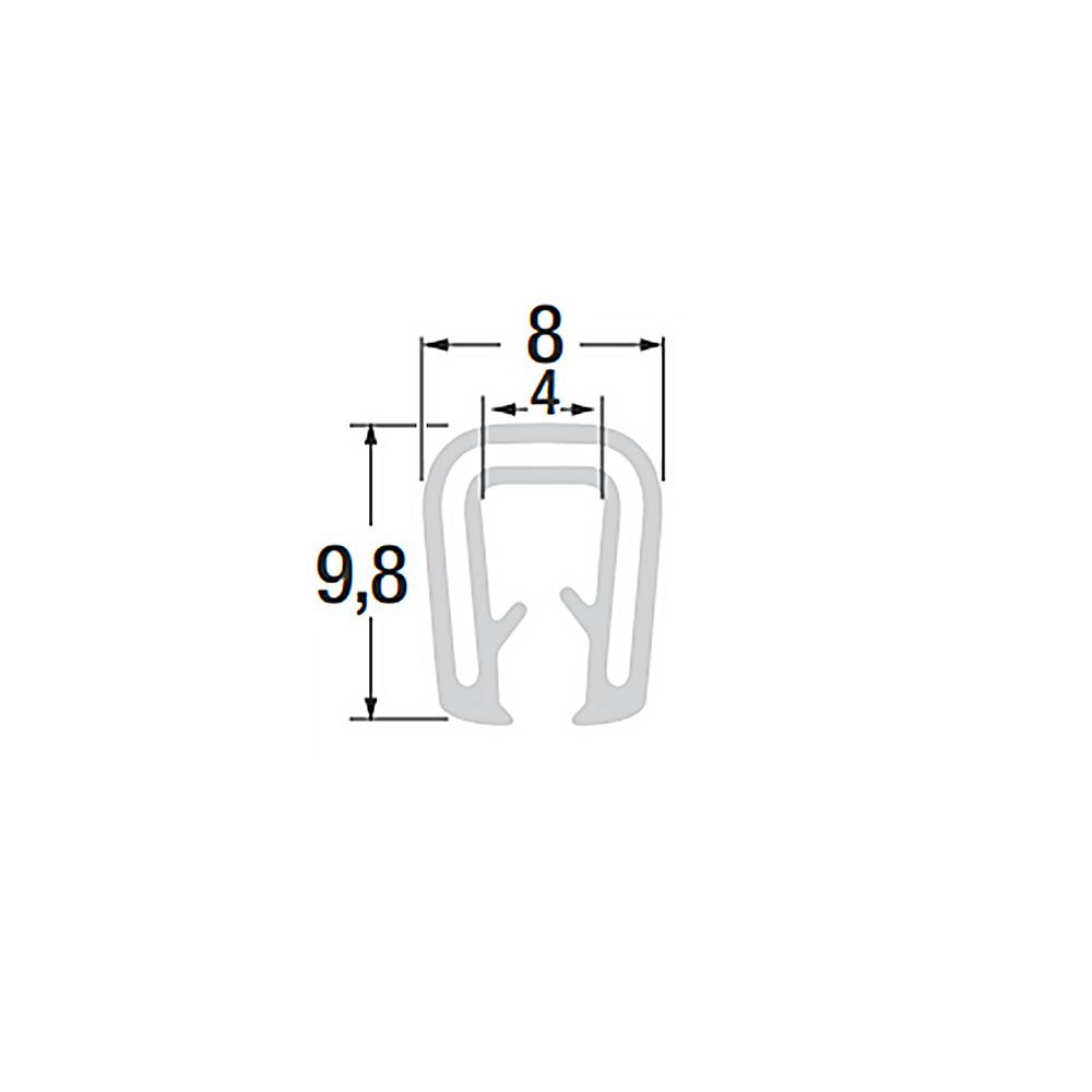 Kantenschutzprofil 9,8x8mm - Silikon mit Drahtklemmband - Klemmbereich 2-3mmdrawing_1