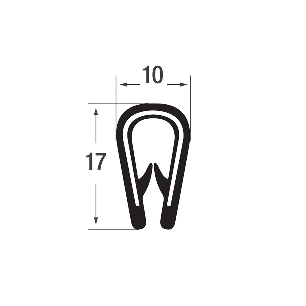 Kantenschutzprofil 17x10mm - PVC mit Stahlklemmband - Klemmbereich 2-4mmdrawing_1