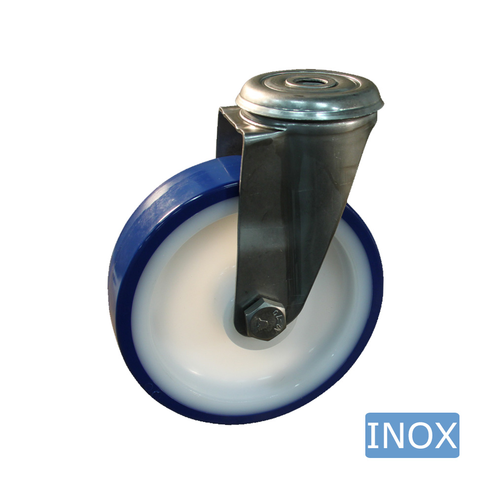 Edelstahl Lenkrolle Hygiene – Rückenloch – TPU Reifen