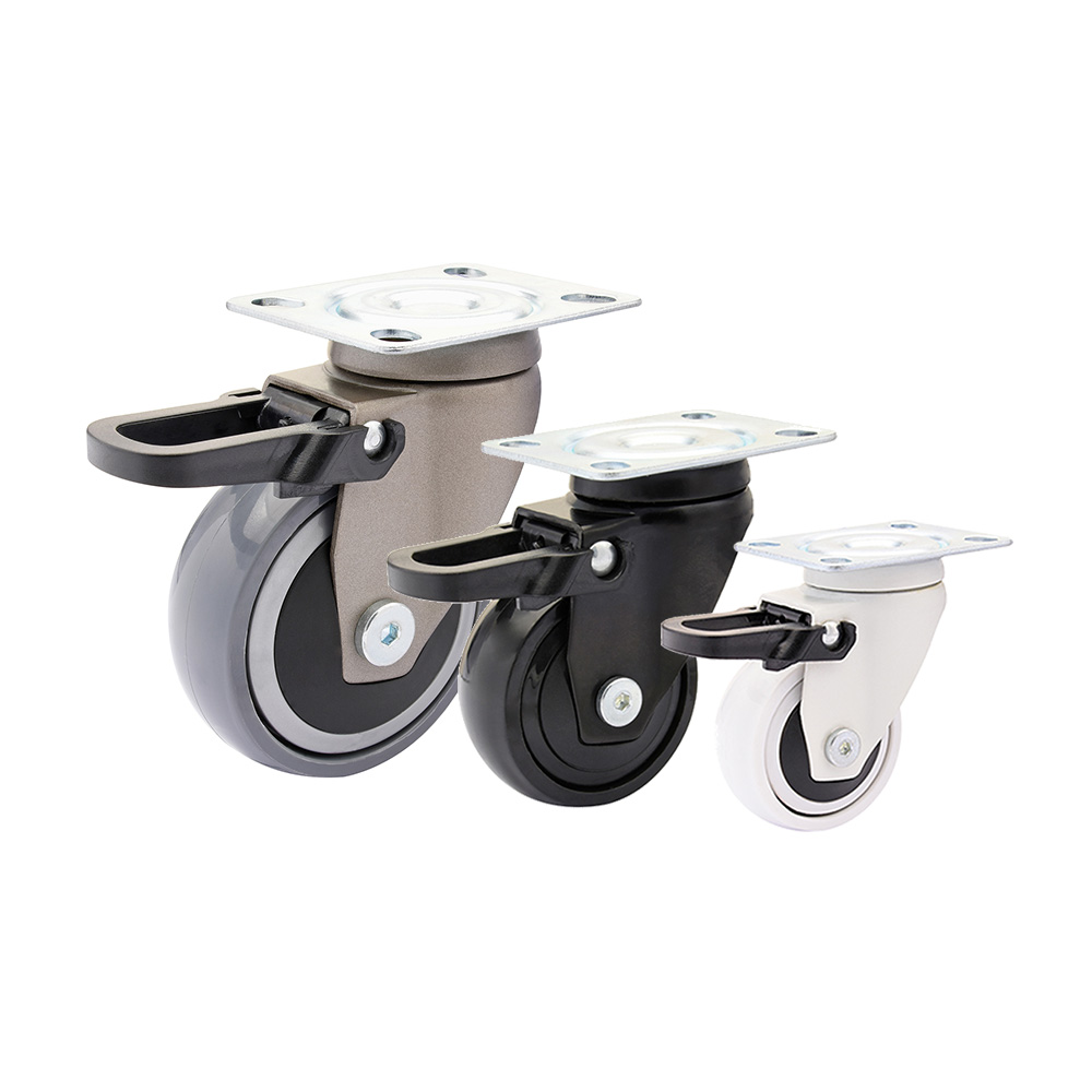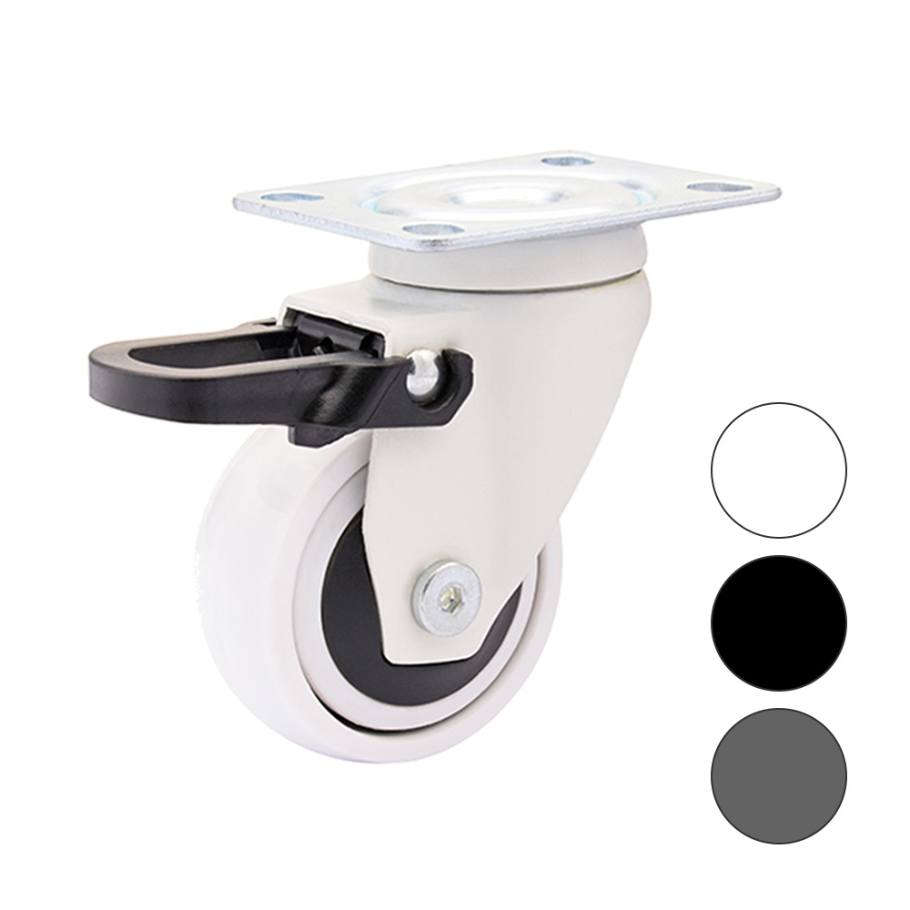 Möbelrolle Lenkrolle Ø75 TPE Bereifung m. Feststeller - Kugellager - Platte - schwarz