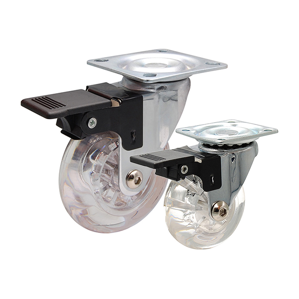 Design-Möbelrolle Lenkrolle Skaterrad Ø50 TPE transparent m. Feststeller - Gleitlager - Platte