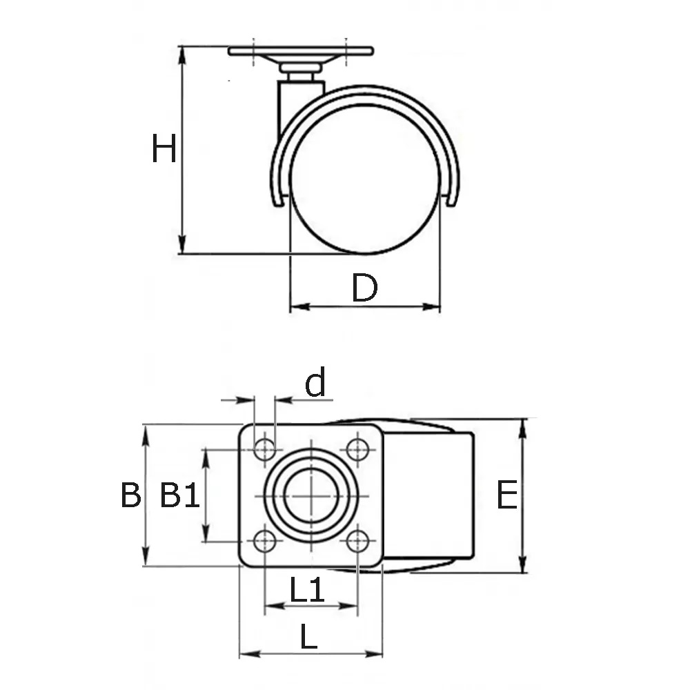 Lenkrolle PA 36mm, stift 8x24mm, PU Lauffläche, Incl Hulse 20x20x1,5 |