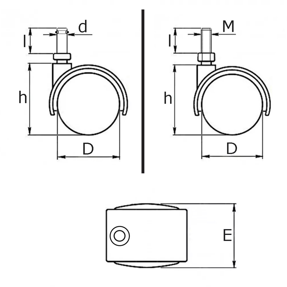 Lenkrolle PA 36mm, stift 8x24mm, PU Lauffläche, Inkl Klemmhülse 8x12,9x26,5 |