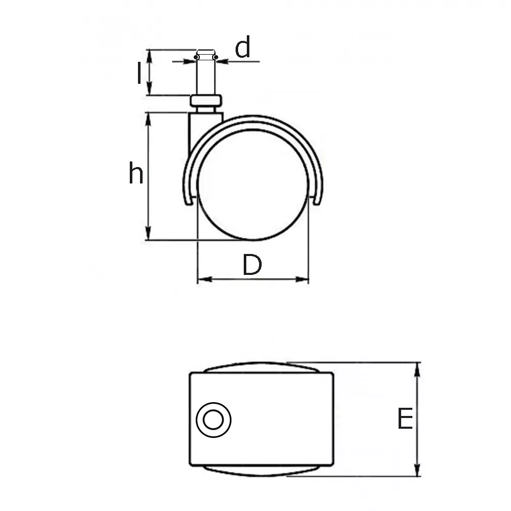 Möbelrollen Ø50mm mit Doppelrolle und PU-Bereifungdrawing_1