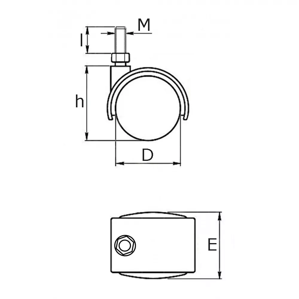 Möbelrollen Ø50mm mit Doppelrolle und PU-Bereifungdrawing_1
