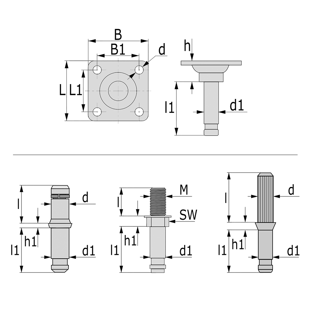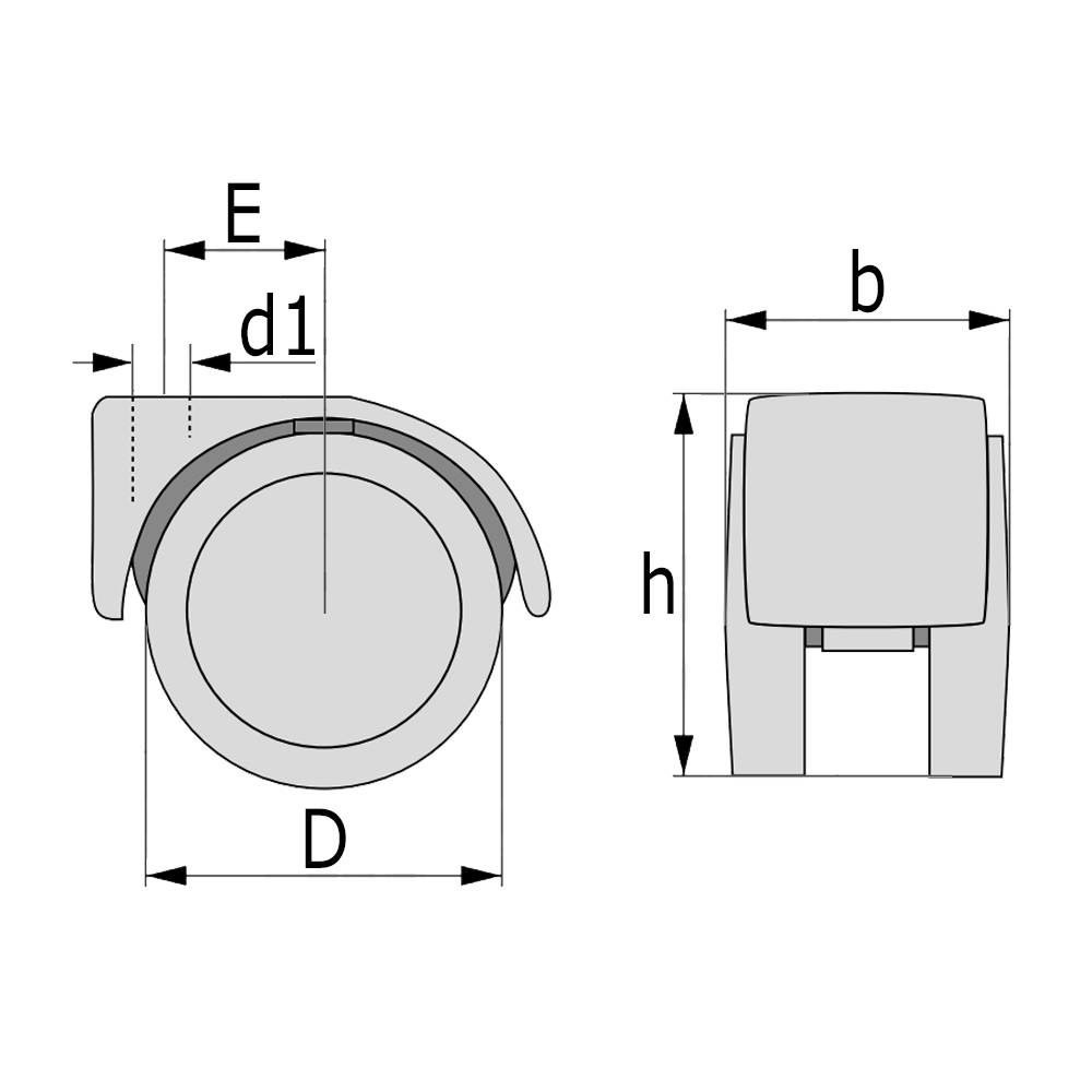 Lenkrolle PA Ø50mm, Gewindestift M8x15mm, PU Lauffläche