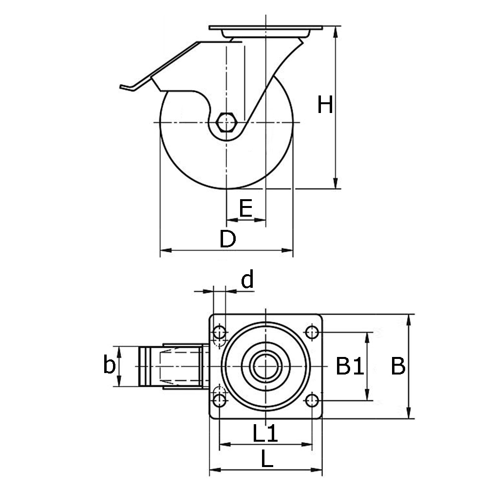 Mini Schwerlast Apparate-Lenkrolle mit Bremse - Platte