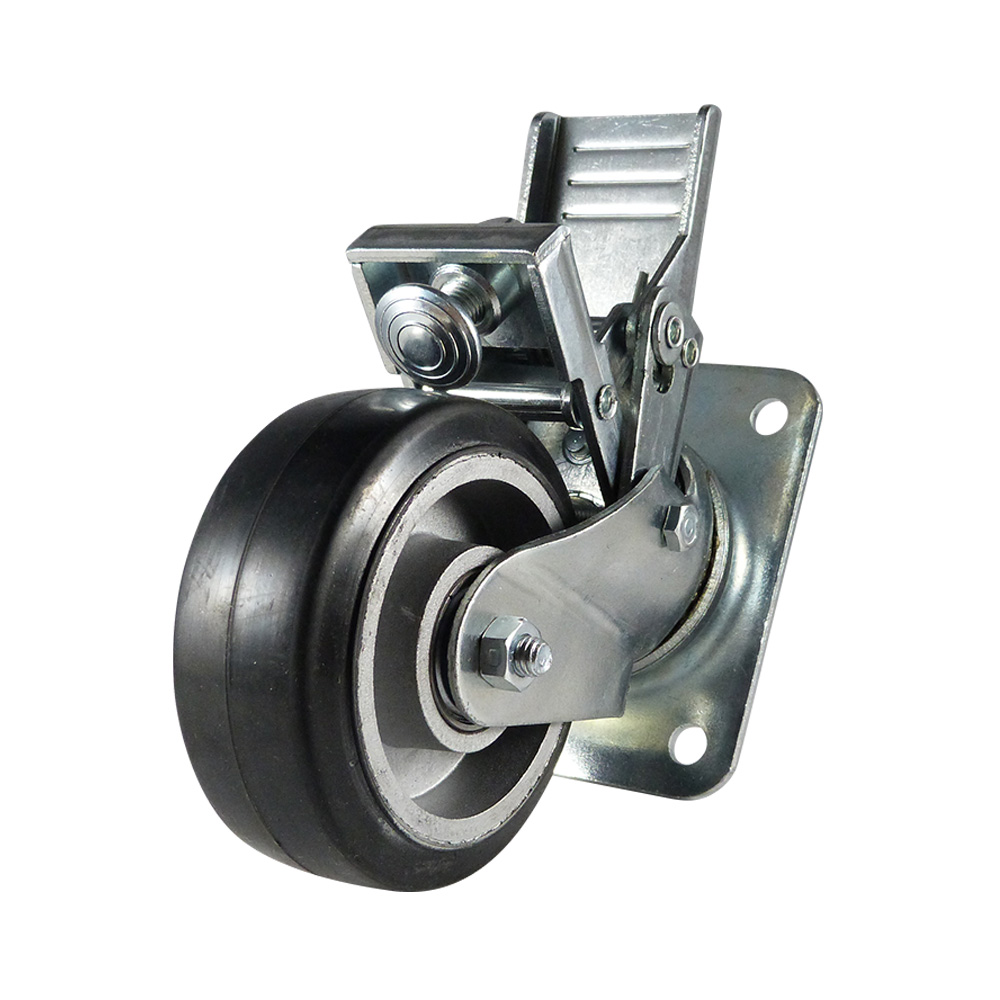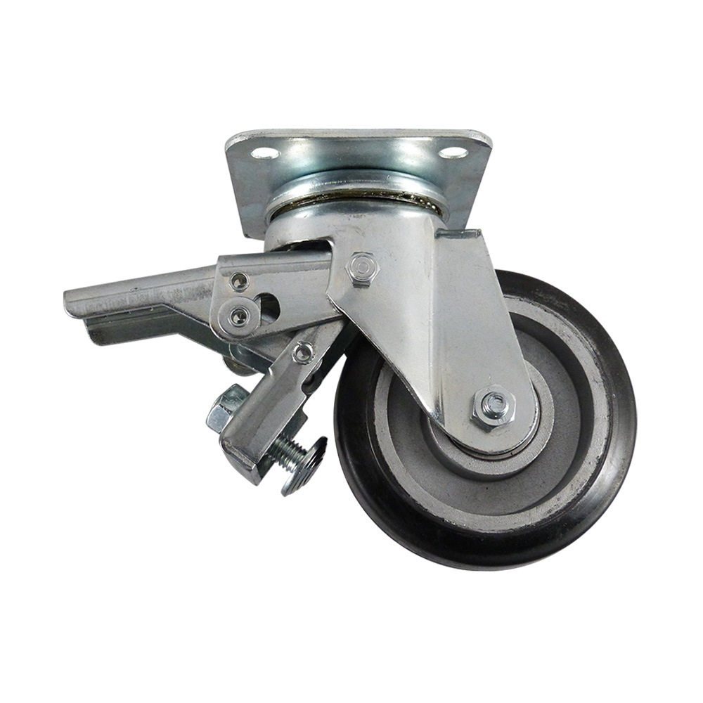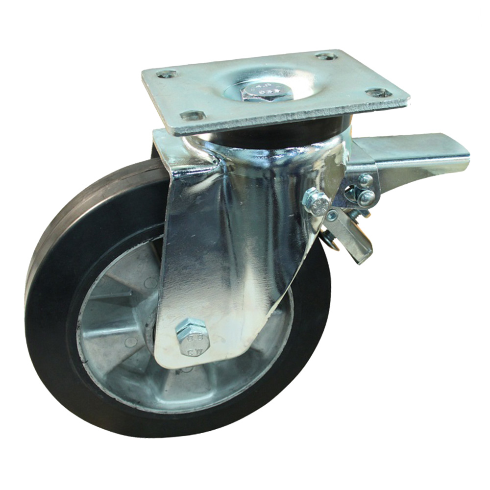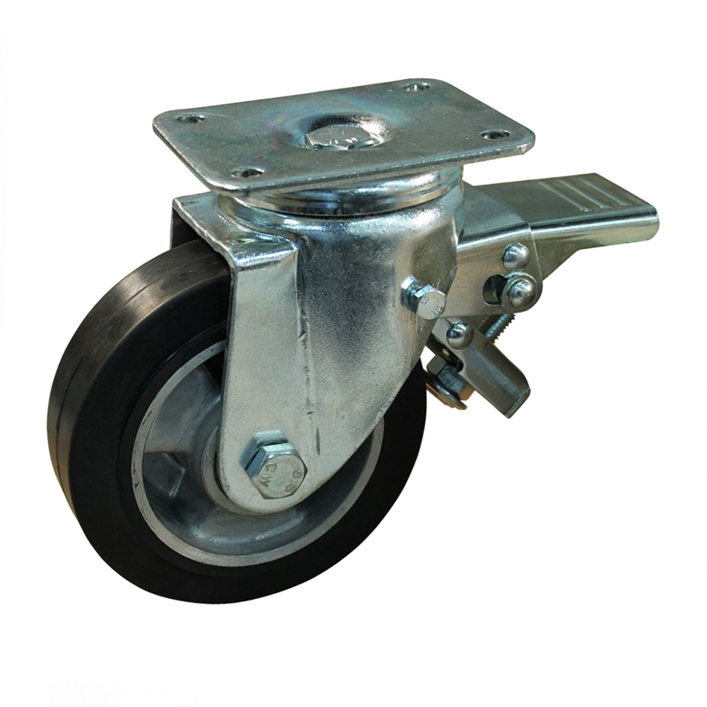 Lenkrolle + Feststeller 125mm, Schwarze Felge mit Gummi Bereifung und Kugellager